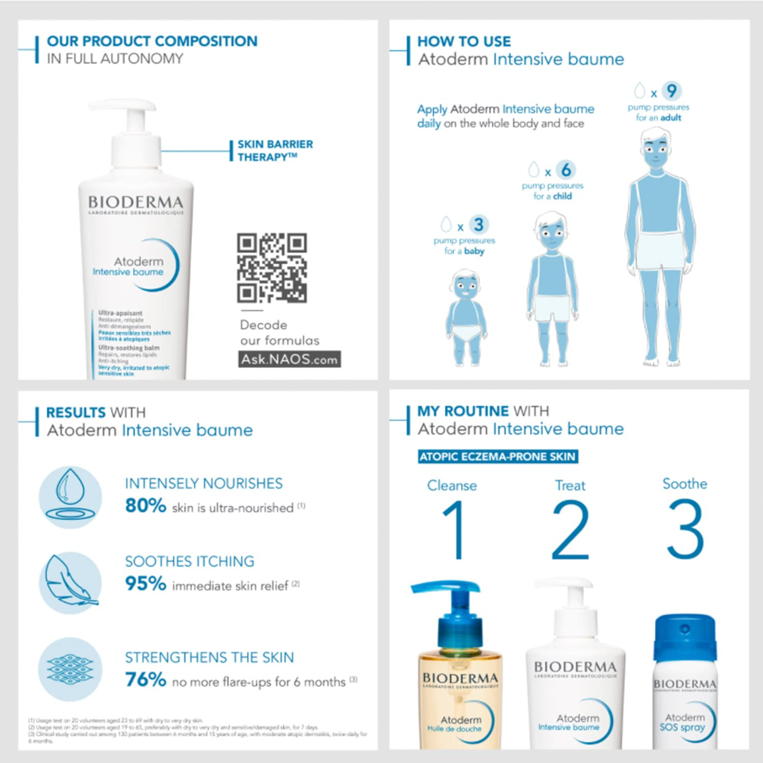 • Apply a generous amount of Atoderm Intensive Gel Cream to clean, dry skin.