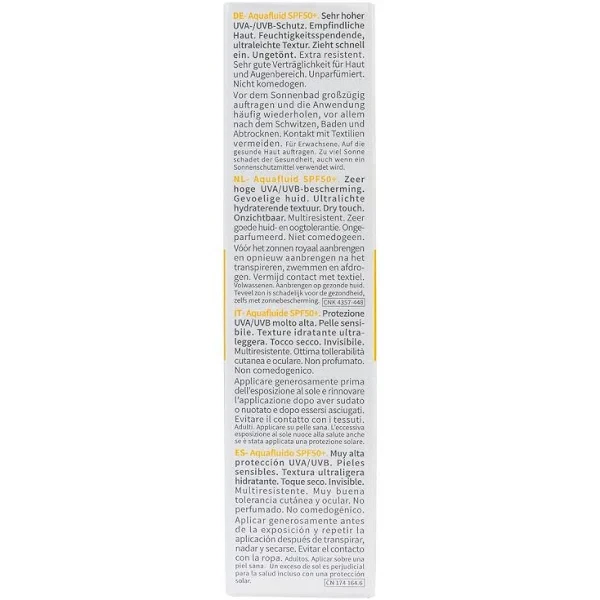• High Sun Protection: Photoderm Aquafluide boasts an impressive SPF 50+ to shield your skin from the harmful effects of UVA and UVB rays.