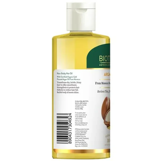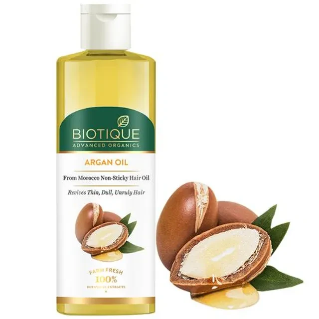 BIOTIQUE Argan Morocco Non-Sticky Hair Oil - Revives Thin, Dull, Unruly Hair, 100% Botanical Extracts, Ayurvedic Recipe, 200 ml