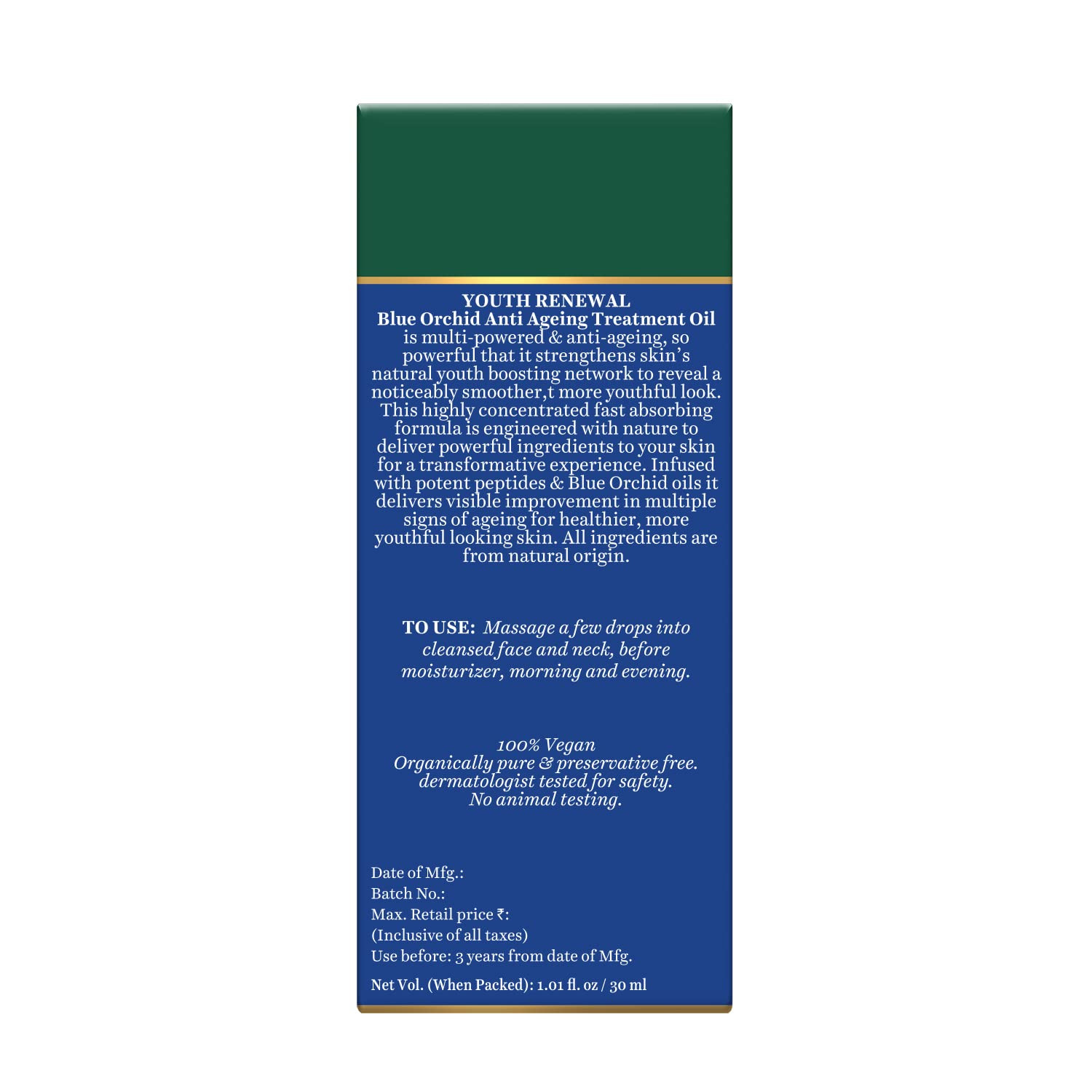 Biotique Youth Renewal - Blue Orchid Anti Ageing Treatment Oil is infused with a blend of powerful natural ingredients, including Blue Orchid extracts known for their anti-ageing properties. This unique formulation combines the wisdom of Ayurveda with modern skincare science to deliver exceptional results.