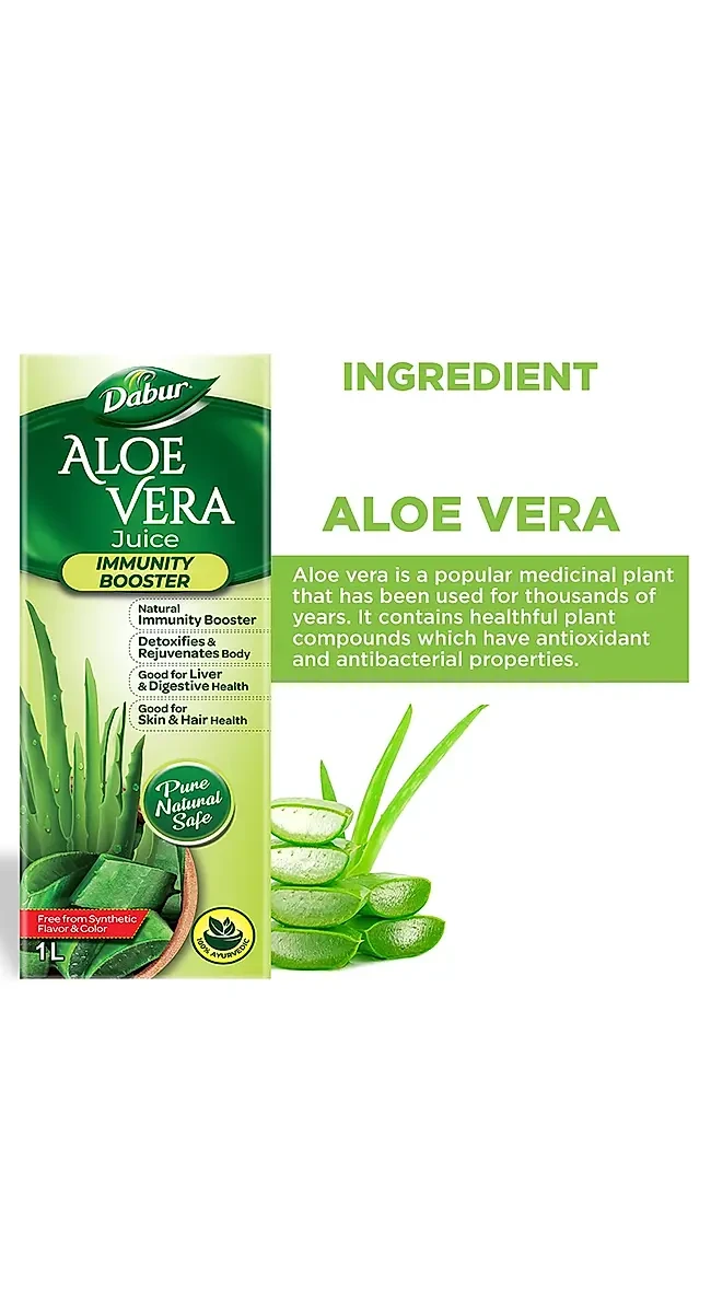 • Dabur Aloe Vera Juice contains 100% pure aloe vera gel, carefully extracted from the inner leaf.