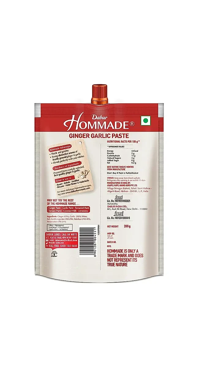 Dabur Hommade Ginger Garlic Paste 200g is your kitchen companion for creating flavorful and aromatic Indian dishes. Made from the finest quality ginger and garlic, this paste is expertly crafted to save you precious time during meal preparation while ensuring the authentic taste of your culinary creations.
