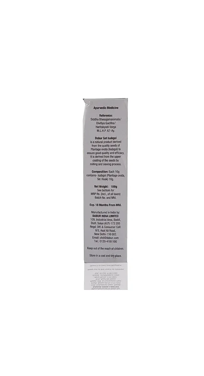 • Quality Assurance: Medilife is committed to delivering high-quality Ayurvedic products. Our Dabur Sat Isabgol 100gm undergoes rigorous quality checks to ensure purity and efficacy.