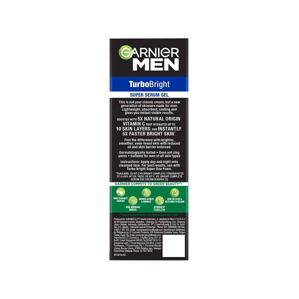 • Garnier Men Turbo Bright Super Serum Gel is suitable for all men who want to achieve a brighter, more radiant complexion.