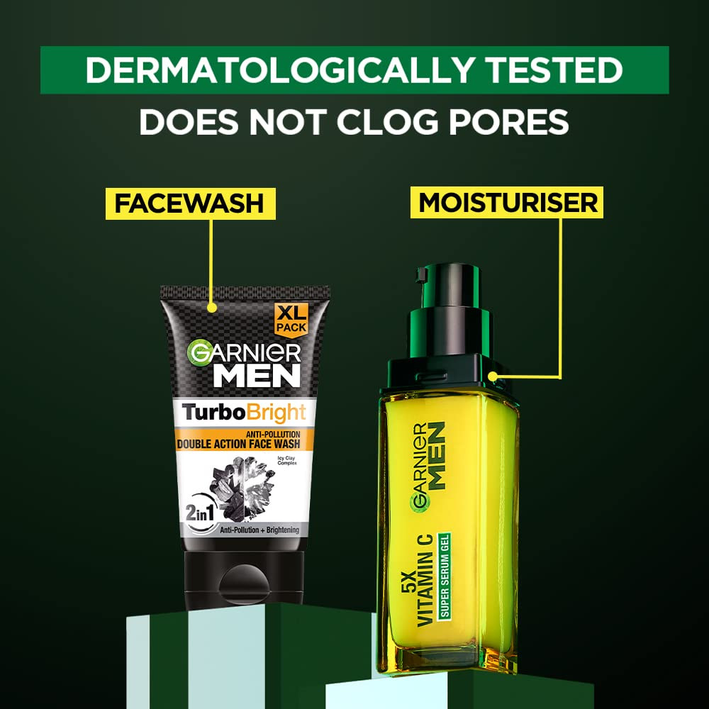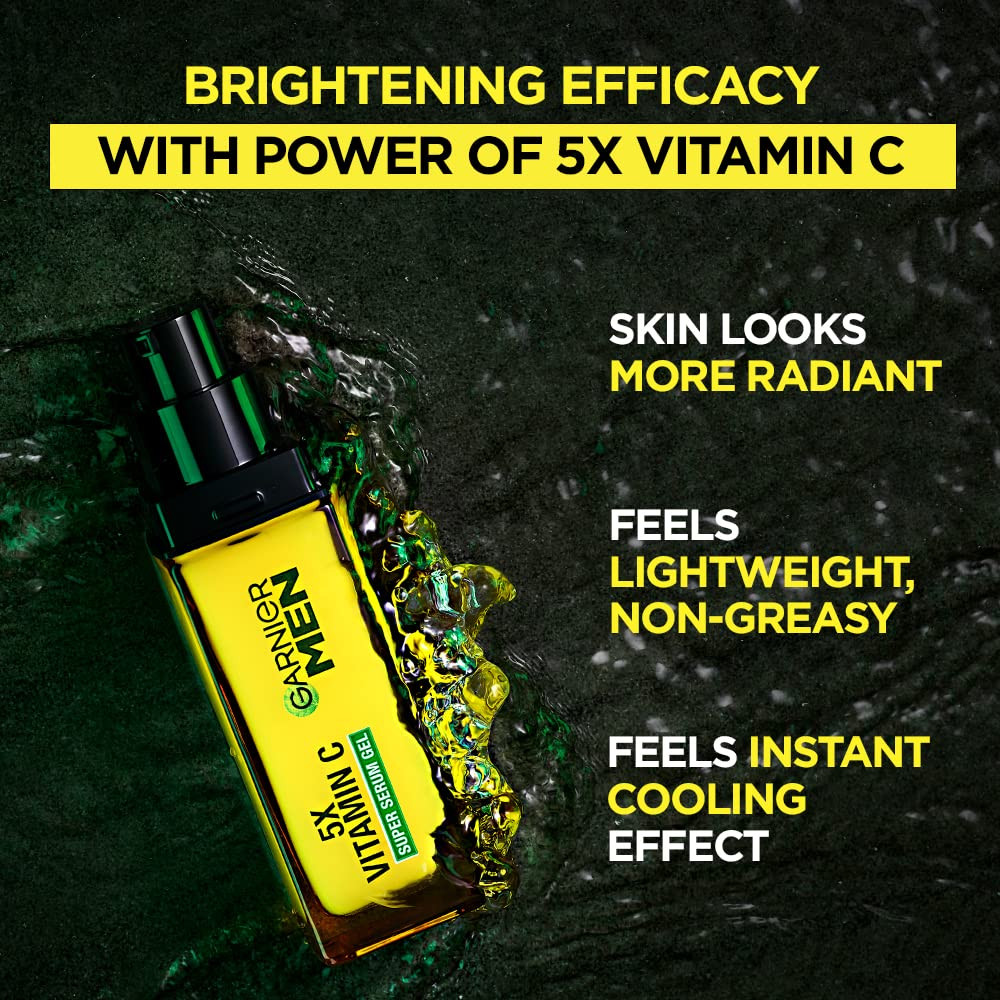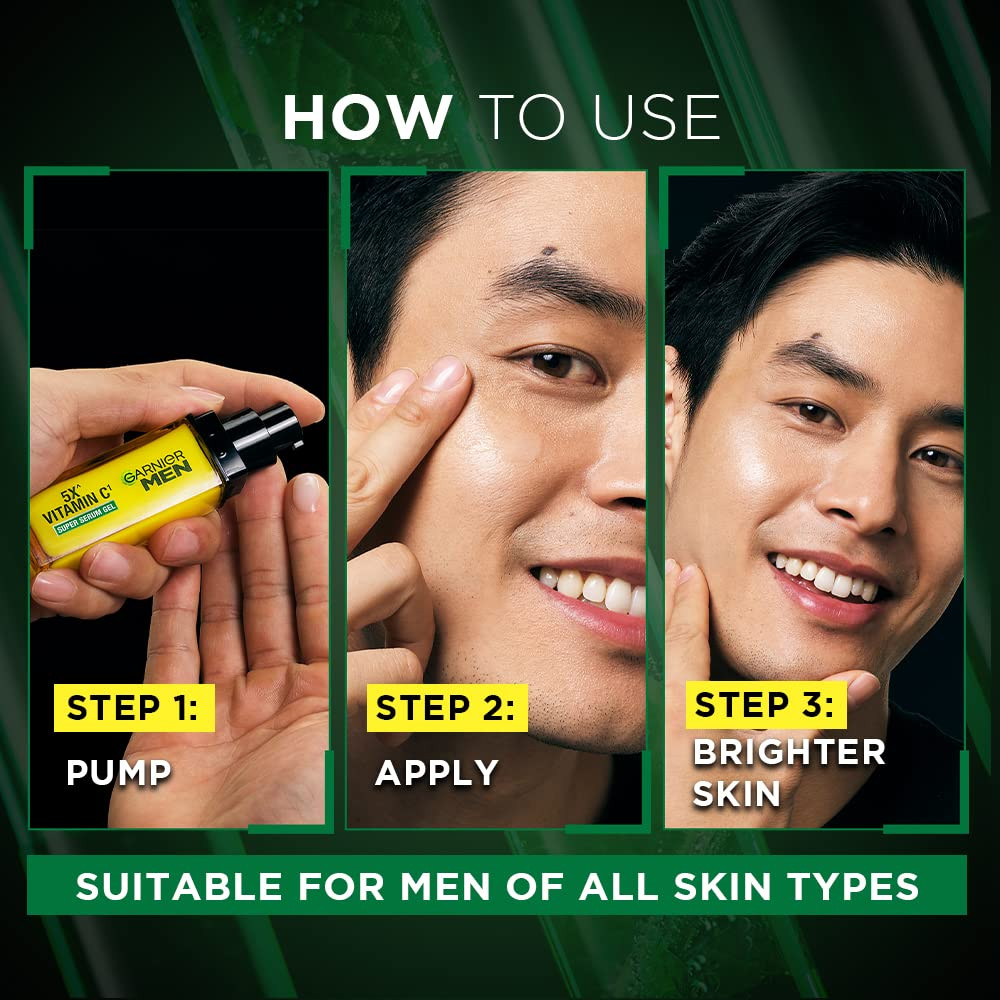 • Instant Brightening: Garnier Men Turbo Bright Super Serum Gel is infused with brightening agents that work quickly to give your skin a radiant and healthy glow. It helps reduce the appearance of dark spots and evens out your skin tone.