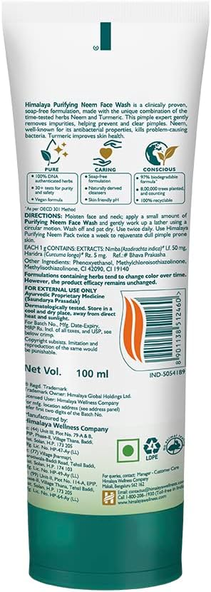 Elevate your daily skincare routine with Himalaya Purifying Neem Face Wash. This carefully formulated face wash is a powerful yet gentle solution for maintaining a clear and radiant complexion. Enriched with the natural goodness of neem and turmeric, it cleanses your skin while offering numerous benefits: