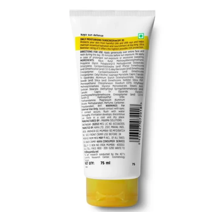 Experience the perfect blend of hydration and sun protection with Kaya Daily Moisturizing Sunscreen SPF30. In a convenient 75 ml size, this sunscreen offers a lightweight formula that not only shields your skin from harmful UV rays but also provides daily moisturization. Enjoy a seamless combination of skincare and sun care for a radiant and protected complexion.