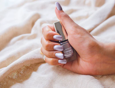 • Apply LAKMÉ TRUE WEAR COLOR CRUSH NAIL COLOR in Gold 04, starting at the base and moving towards the tip.
