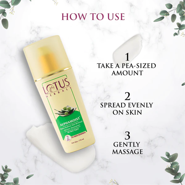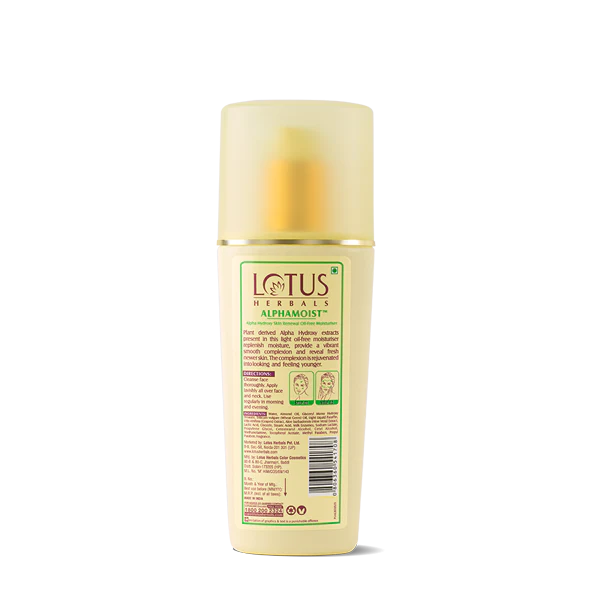 • Oil-Free Hydration: Lotus Alphamoist offers oil-free hydration, making it ideal for individuals with oily or acne-prone skin types.