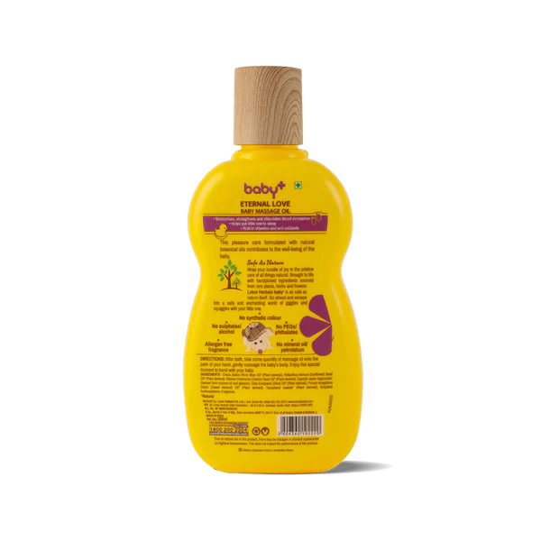 Lotus Herbals BABY ETERNAL Love Baby Massage Oil 100ml is enriched with a blend of natural and effective ingredients, including: