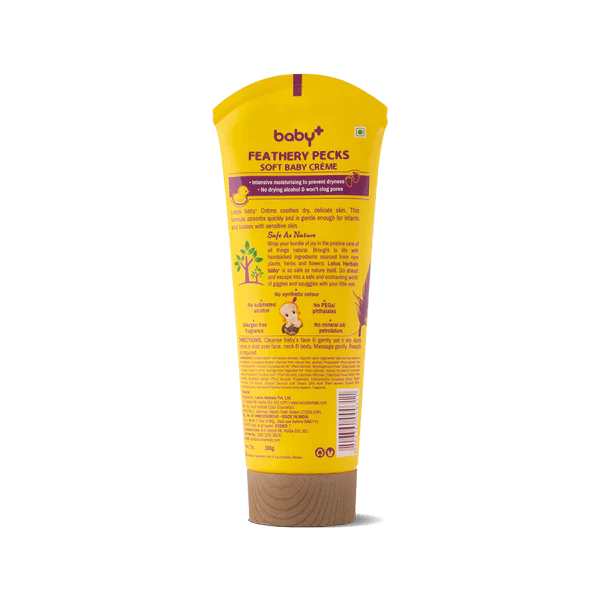 • Lotus Herbals BABY FEATHERY Pecks Soft Baby Cream is a must-have for parents who want to provide the best care for their baby's skin. It's suitable for all skin types, including sensitive skin. From infants to toddlers, this cream is perfect for babies of all ages.