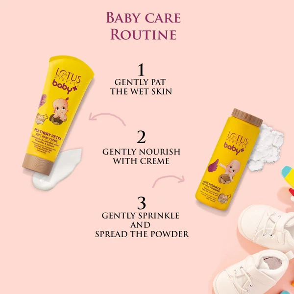 Lotus Herbals BABY FEATHERY Pecks Soft Baby Cream 50g is enriched with a blend of natural and effective ingredients, including: