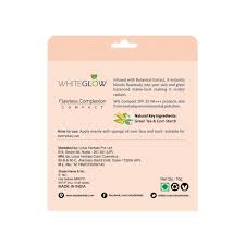 • After applying your foundation or concealer, gently pat Lotus Herbals WHITEGLOW Flawless Complexion Compact over your face and neck using a sponge or makeup brush.