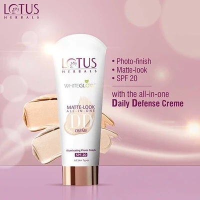 Lotus Herbals WHITEGLOW Matt-Look DD Cream SPF-20 in Natural Beige (50g) is your ultimate beauty companion for achieving a flawless and radiant complexion. This unique DD cream seamlessly combines the benefits of skincare and makeup, offering you a multifunctional solution for daily use. With its lightweight and non-greasy formula, it provides a matte finish, ensuring your skin looks fresh and beautiful throughout the day.