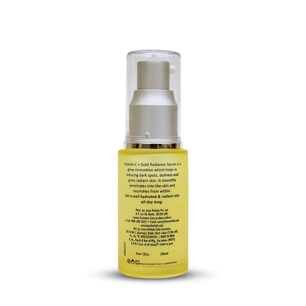 Lotus Herbals WhiteGlow VITAMIN-C + Gold RADIANCE SERUM 30ml is a premium skincare serum that offers a radiant transformation to your skin. This potent serum combines the benefits of Vitamin C and the luxurious touch of gold to enhance your skin's radiance and vitality. With each application, it works diligently to promote a brighter, more youthful complexion, leaving you with revitalized and glowing skin.