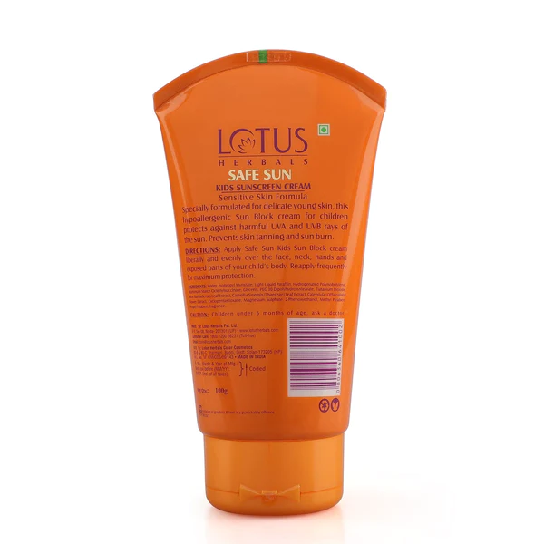 Lotus Safe Sun Kids Sunscreen Cream SPF 25 50g is thoughtfully crafted to safeguard your child's sensitive skin from the sun's harmful rays. This specially formulated sunscreen provides reliable sun protection for children, with SPF 25 to shield their delicate skin from UV damage. Whether they're playing outdoors or attending school, you can ensure that your little one's skin is well-protected and nurtured.