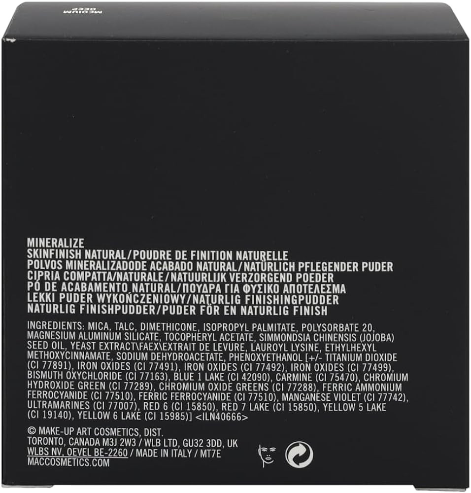 M.A.C's Mineralize Skinfinish Natural in "Medium" is meticulously crafted with premium ingredients, including mica, dimethicone, silica, and more, to provide a smooth, blendable texture that feels weightless on the skin.