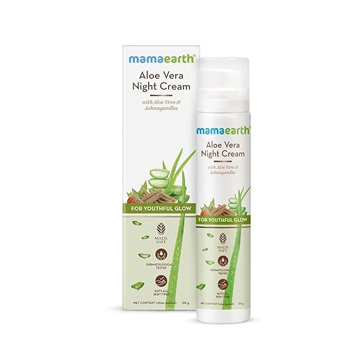 Mamaearth Aloe Vera Night Cream with Aloe Vera and Ashwagandha for a Youthful Glow – 50 g