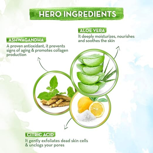 • Aloe Vera Nourishment: Aloe Vera is a natural moisturizer that helps hydrate and soothe the skin, leaving it feeling refreshed.