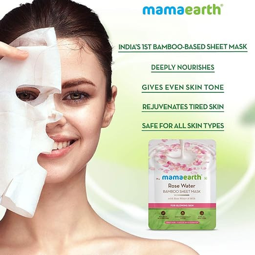 Mamaearth Rose Water Bamboo Sheet Mask with Rose Water and Milk for Glowing Skin - 25 g