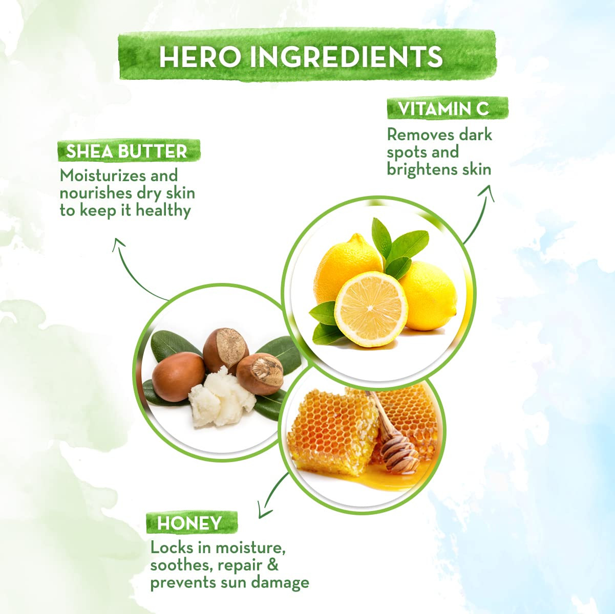 • Honey: Known for its moisturizing and soothing properties, honey helps keep your skin soft and supple.
