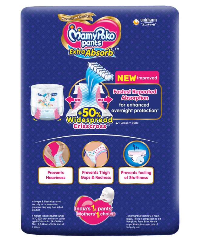 Maximum Absorbency: MamyPoko Pants Extra Absorb come with an advanced core that provides extra absorbency, ensuring your baby stays dry for an extended period.