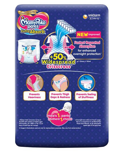 • Extra Absorbency: MamyPoko Pants Extra Absorb are equipped with an extra-absorbent core, ensuring your toddler stays dry and comfortable for an extended period.