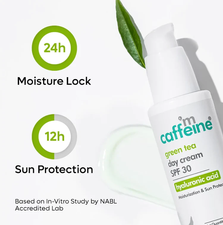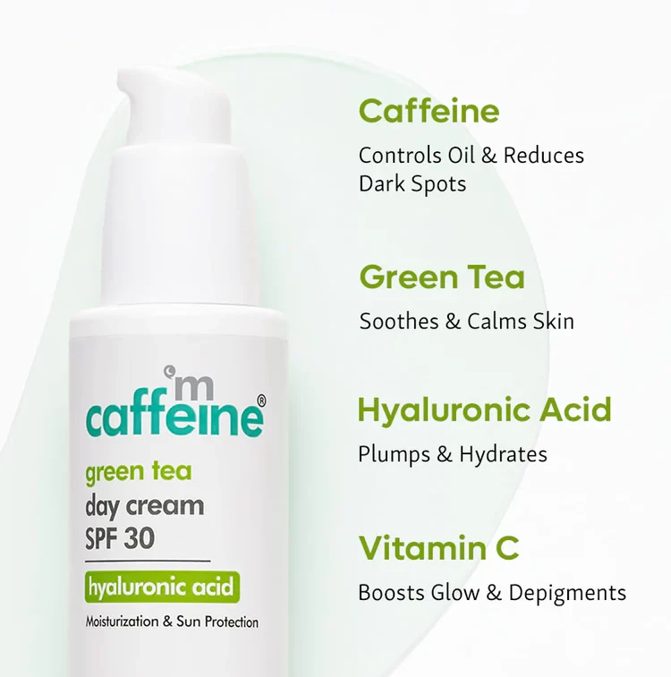 Elevate your skincare routine with mCaffeine Green Tea Day Cream with SPF 30 PA++ – a 50 ml essential for hydrated, protected, and radiant skin throughout the day.