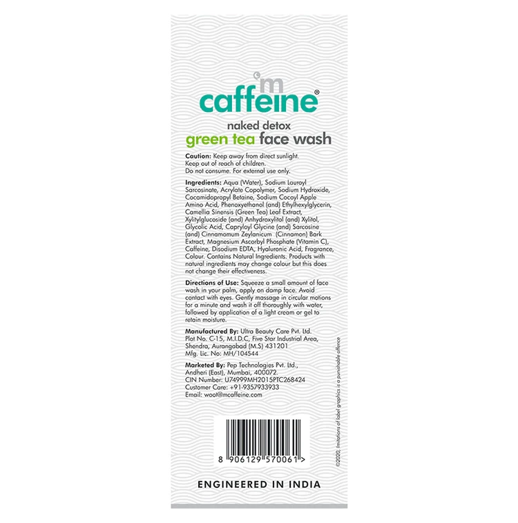 Elevate your skincare routine with the mCaffeine Green Tea Face Wash enriched with Vitamin C & Hyaluronic Acid. In a convenient 100ml size, this face wash is a refreshing blend of green tea extracts, skin-brightening Vitamin C, and hydrating Hyaluronic Acid. Experience the power of natural ingredients that cleanse, brighten, and hydrate your skin, leaving it feeling refreshed and rejuvenated.