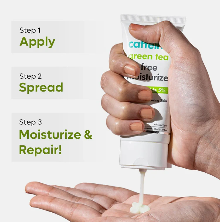 Revitalize your skin with mCaffeine Green Tea Oil-Free Moisturizer, a nourishing blend infused with 5% Niacinamide. This 50 ml moisturizer is meticulously formulated to reduce blemishes, repair the skin barrier, and provide a refreshing burst of hydration without the greasy feel. Elevate your skincare routine with this oil-free elixir for a revitalized and healthy-looking complexion.