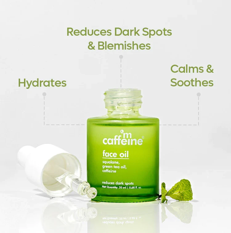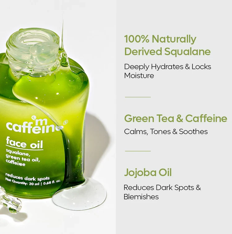 Elevate your skincare routine with mCaffeine Green Tea & Squalane Face Oil and unveil a dewy, glowing complexion.