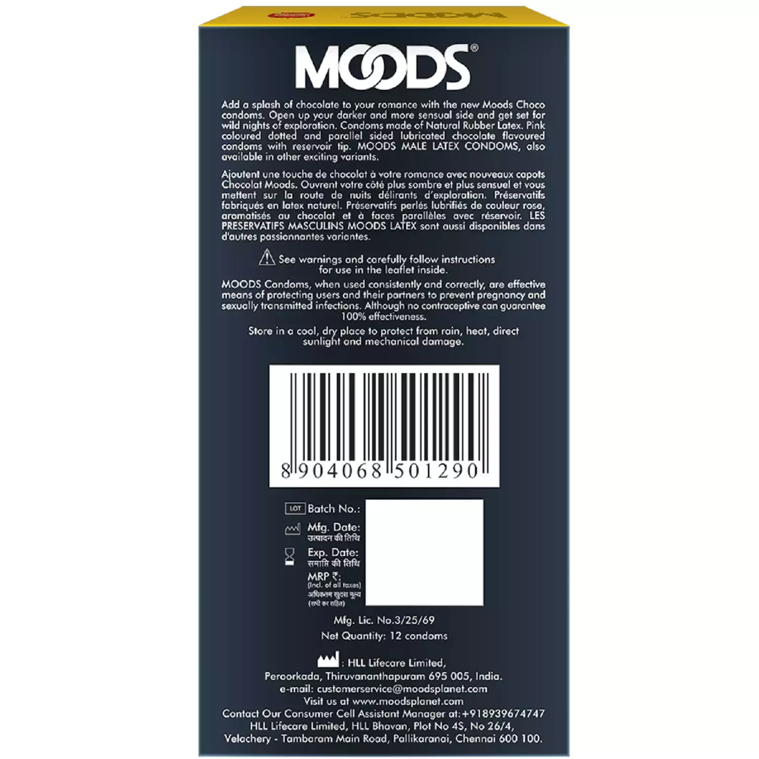 • Chocolate Sensation: MOODS CHOCO 12s condoms are flavored with a rich chocolate essence that brings a delightful and arousing dimension to your intimate moments.