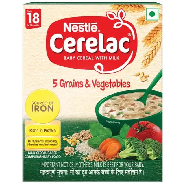 Continue nurturing your toddler's growth and development with the wholesome blend of grains and vegetables in Nestle Cerelac Baby Cereal with Milk Wheat 5 Grains & Vegetables. Trust in the best online pharmacy service with MediLife.