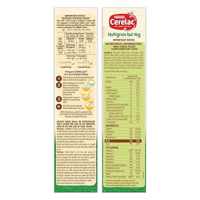 Supports Toddler Growth: Cerelac is designed to provide your growing toddler with the right nutrients they need as they explore a wider range of foods.