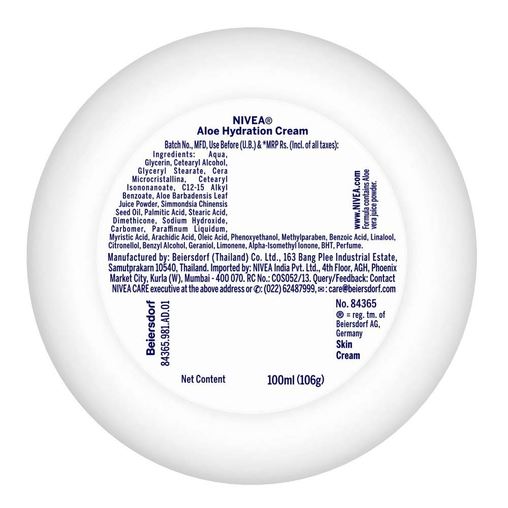 • Intense Hydration: Nivea Aloe Hydration Skin Cream quenches your skin's thirst with its intense hydration formula, leaving it feeling soft, supple, and deeply moisturized.
