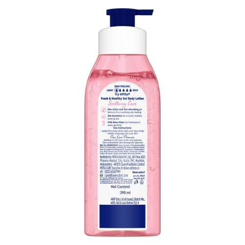 • Convenience: Shopping with MediLife is convenient and user-friendly, allowing you to order Nivea Fresh & Healthy Gel Body Lotion Soothing Care Rose Water 390ml and other skincare essentials from the comfort of your home.