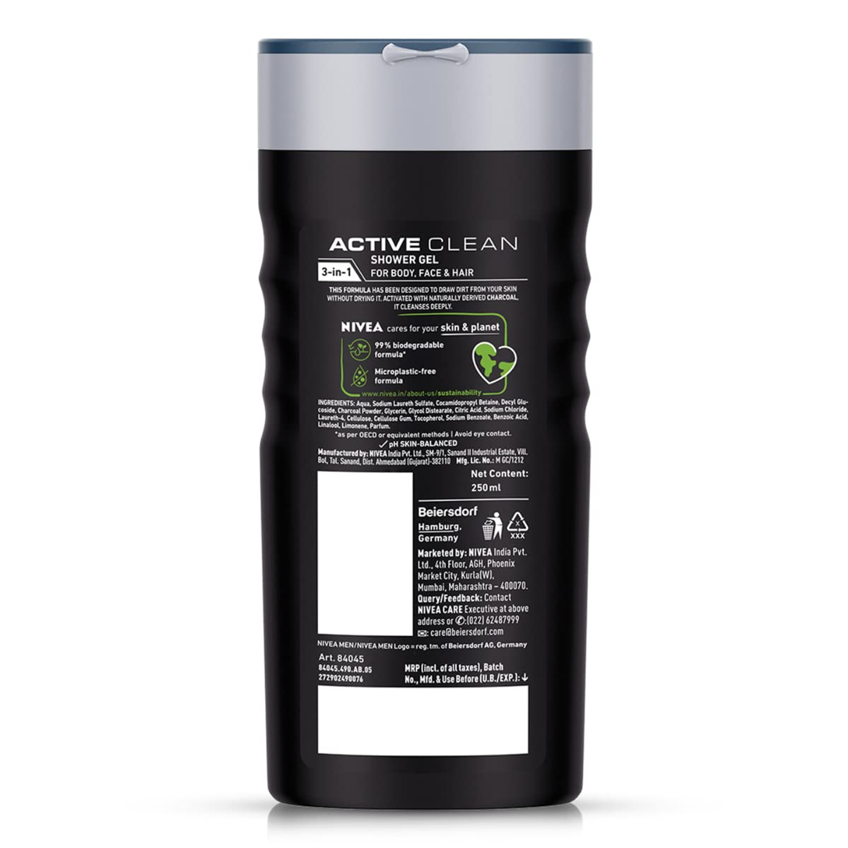 • Active Cleanse: Nivea Men Shower Gel Active Clean thoroughly cleanses your skin, removing dirt, impurities, and sweat, leaving you with a fresh and clean feeling.