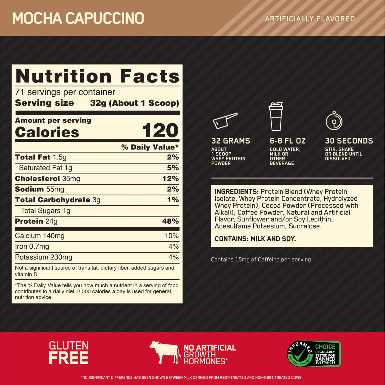 Optimum Nutrition (ON) Gold Standard 100% Whey Protein | For Muscle Recovery | No Added Sugar | Flavour Powder Mocha Cappuccino 5lb