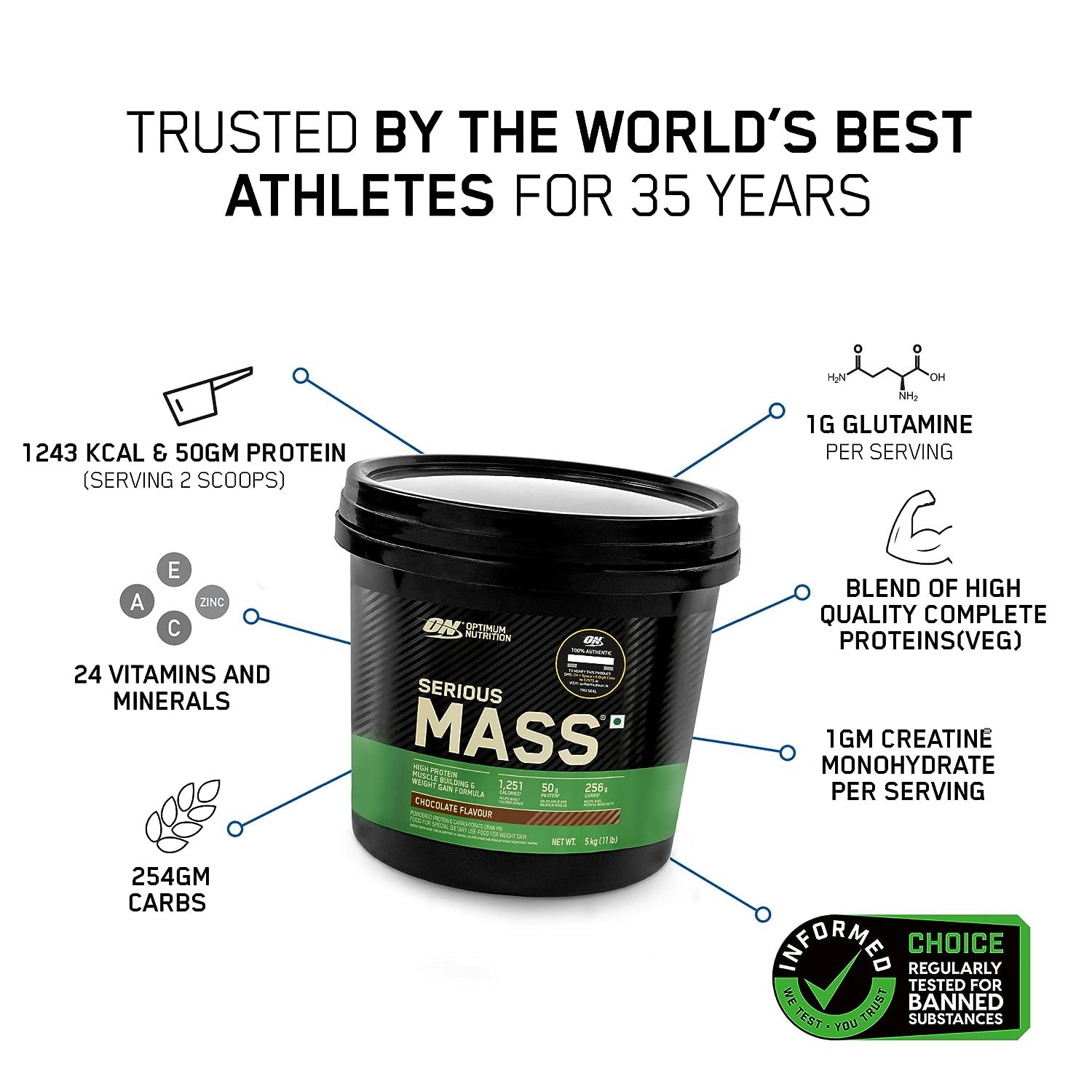 Optimum Nutrition (ON) Serious Mass High Protein for Weight Gain & Muscle Building | Flavour Powder Chocolate 5 kg